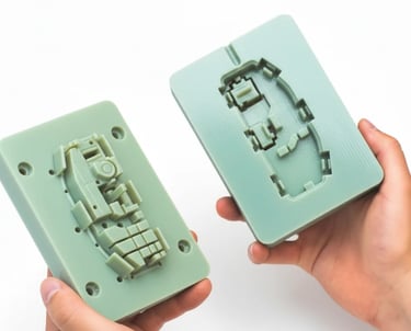 Fabricamos insertos funcionales en resina de alta resistencia, diseñados para acoplarse a portamoldes universales. Ideales para inyectar piezas reales en materiales finales para testeo o series limitadas. Realizamos el diseño completo de la cavidad, ángulos de desmolde, sistemas de alimentación y análisis de contracción según especificaciones del cliente.